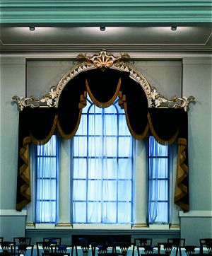 RAMS HEAD FINIAL – Custom made curtains and separate swag piece