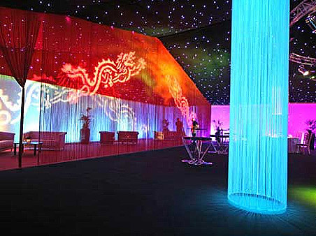 Unique lighting effects can be created with fringe curtains by projecting an image onto them. Send us your logos for us to estimate.